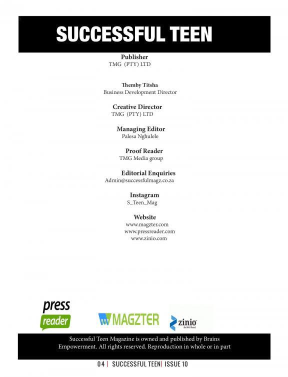 Successful teen magazine is a publication that celebrates and empowers teenagers. We pride ourselves in celebrating and promoting ordinary teenagers who are doing well in business, school, social entrepreneurs and arts in the different landscapes of South Africa and abroad