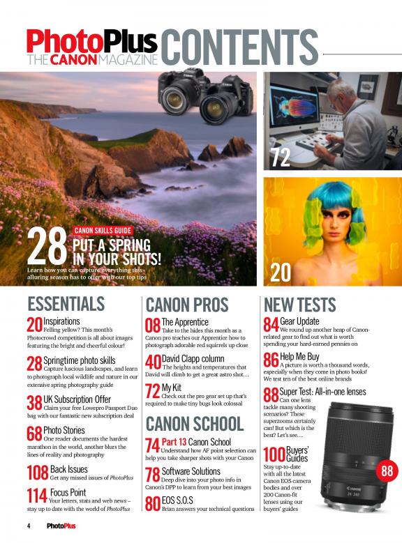 PhotoPlus: The Canon Magazine is a comprehensive resource for Canon photographers of all levels. Whether you're a beginner or a seasoned pro, you'll find something to learn in every issue. The magazine covers everything from buying and using Canon cameras and lenses to troubleshooting and repairing them. It also features interviews with Canon photographers, inspirational photography stories, and stunning photography. Here are some of the things you can expect in PhotoPlus: The Canon Magazine: * Buying guides: PhotoPlus: The Canon Magazine provides in-depth buying guides for Canon cameras and lenses. These guides will help you choose the right gear for your needs and budget. * Reviews: PhotoPlus: The Canon Magazine reviews the latest Canon cameras and lenses. These reviews are thorough and unbiased, and they will help you decide if a particular piece of gear is right for you. * Features: PhotoPlus: The Canon Magazine features articles on a variety of topics related to Canon photography. These topics include technique, composition, post-processing, and more. * Interviews: PhotoPlus: The Canon Magazine interviews Canon photographers, from beginners to professionals. These interviews provide insights into the photographers' work and their thoughts on Canon photography. * Photography stories: PhotoPlus: The Canon Magazine features photography stories from Canon photographers around the world. These stories are inspiring and informative, and they will help you learn new things about photography. * Stunning photography: PhotoPlus: The Canon Magazine features stunning photography from Canon photographers around the world. This photography is sure to inspire you and motivate you to take your own photography to the next level. If you're interested in learning more about Canon photography, then PhotoPlus: The Canon Magazine is the perfect magazine for you. Subscribe today and start exploring the world of Canon photography!