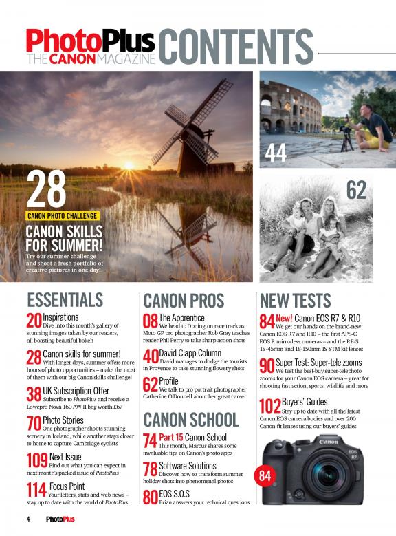 PhotoPlus: The Canon Magazine is a comprehensive resource for Canon photographers of all levels. Whether you're a beginner or a seasoned pro, you'll find something to learn in every issue. The magazine covers everything from buying and using Canon cameras and lenses to troubleshooting and repairing them. It also features interviews with Canon photographers, inspirational photography stories, and stunning photography. Here are some of the things you can expect in PhotoPlus: The Canon Magazine: * Buying guides: PhotoPlus: The Canon Magazine provides in-depth buying guides for Canon cameras and lenses. These guides will help you choose the right gear for your needs and budget. * Reviews: PhotoPlus: The Canon Magazine reviews the latest Canon cameras and lenses. These reviews are thorough and unbiased, and they will help you decide if a particular piece of gear is right for you. * Features: PhotoPlus: The Canon Magazine features articles on a variety of topics related to Canon photography. These topics include technique, composition, post-processing, and more. * Interviews: PhotoPlus: The Canon Magazine interviews Canon photographers, from beginners to professionals. These interviews provide insights into the photographers' work and their thoughts on Canon photography. * Photography stories: PhotoPlus: The Canon Magazine features photography stories from Canon photographers around the world. These stories are inspiring and informative, and they will help you learn new things about photography. * Stunning photography: PhotoPlus: The Canon Magazine features stunning photography from Canon photographers around the world. This photography is sure to inspire you and motivate you to take your own photography to the next level. If you're interested in learning more about Canon photography, then PhotoPlus: The Canon Magazine is the perfect magazine for you. Subscribe today and start exploring the world of Canon photography!