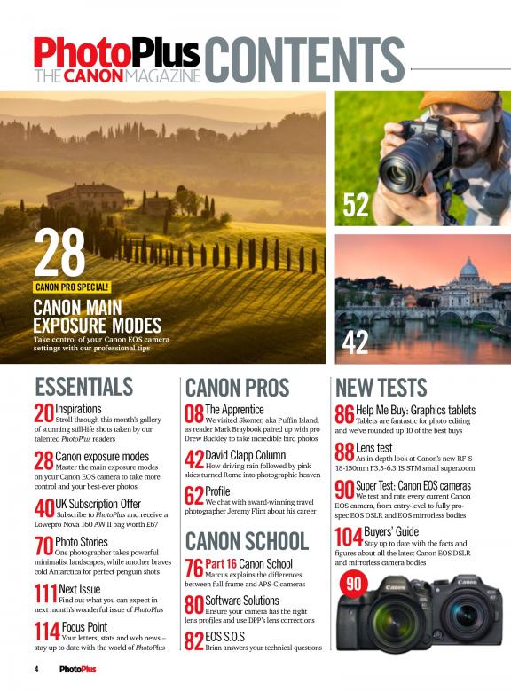 PhotoPlus: The Canon Magazine is a comprehensive resource for Canon photographers of all levels. Whether you're a beginner or a seasoned pro, you'll find something to learn in every issue. The magazine covers everything from buying and using Canon cameras and lenses to troubleshooting and repairing them. It also features interviews with Canon photographers, inspirational photography stories, and stunning photography. Here are some of the things you can expect in PhotoPlus: The Canon Magazine: * Buying guides: PhotoPlus: The Canon Magazine provides in-depth buying guides for Canon cameras and lenses. These guides will help you choose the right gear for your needs and budget. * Reviews: PhotoPlus: The Canon Magazine reviews the latest Canon cameras and lenses. These reviews are thorough and unbiased, and they will help you decide if a particular piece of gear is right for you. * Features: PhotoPlus: The Canon Magazine features articles on a variety of topics related to Canon photography. These topics include technique, composition, post-processing, and more. * Interviews: PhotoPlus: The Canon Magazine interviews Canon photographers, from beginners to professionals. These interviews provide insights into the photographers' work and their thoughts on Canon photography. * Photography stories: PhotoPlus: The Canon Magazine features photography stories from Canon photographers around the world. These stories are inspiring and informative, and they will help you learn new things about photography. * Stunning photography: PhotoPlus: The Canon Magazine features stunning photography from Canon photographers around the world. This photography is sure to inspire you and motivate you to take your own photography to the next level. If you're interested in learning more about Canon photography, then PhotoPlus: The Canon Magazine is the perfect magazine for you. Subscribe today and start exploring the world of Canon photography!
