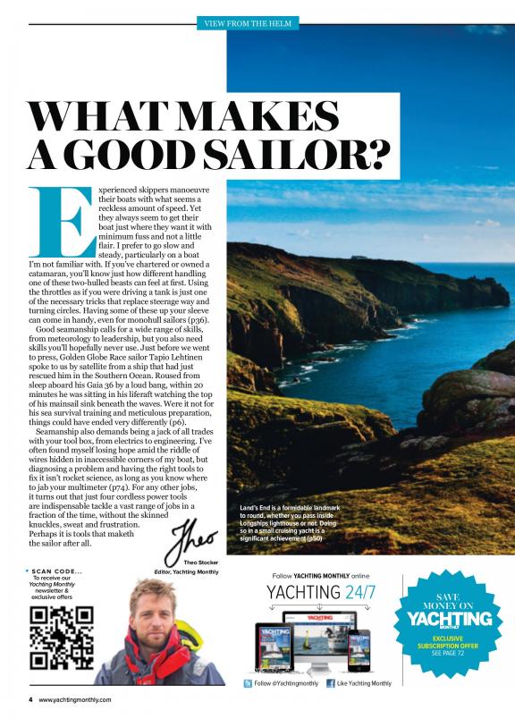 Published by Time Inc (UK). Yachting monthly is at the heart of the British yachting market and is for people who actively sail their boats - whether cruising across the channel, around the coast or further a field in blue waters. It provides an entertaining mix of vital information for cruising yachtsmen with all levels of experience, which maximises their enjoyment, increases their skills and gives them the confidence to broaden their horizons.