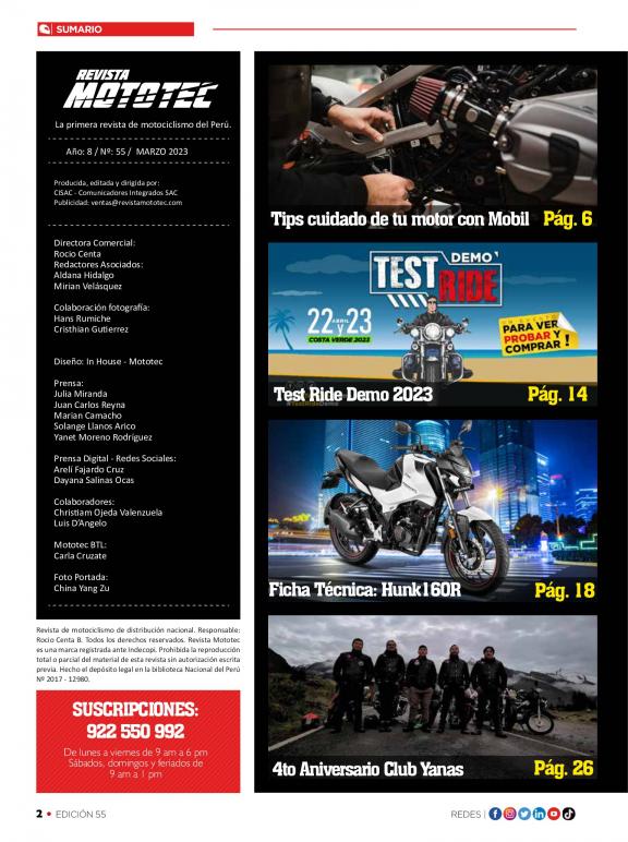 Revista MOTOTEC Perú es la primera revista del mundo motociclista de Perú