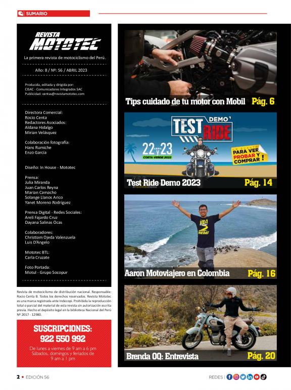 Revista MOTOTEC Perú es la primera revista del mundo motociclista de Perú