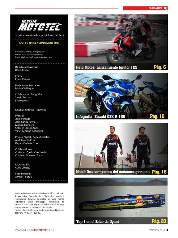 Revista MOTOTEC Perú es la primera revista del mundo motociclista de Perú