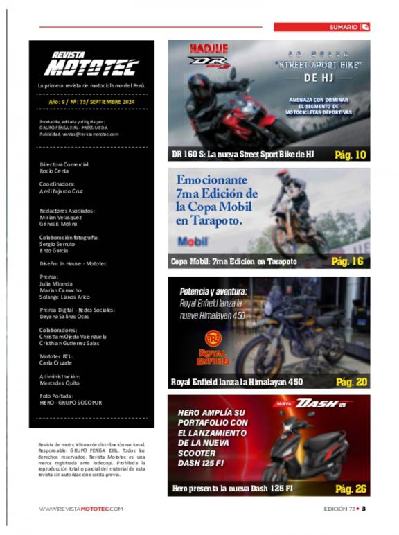 Revista MOTOTEC Perú es la primera revista del mundo motociclista de Perú