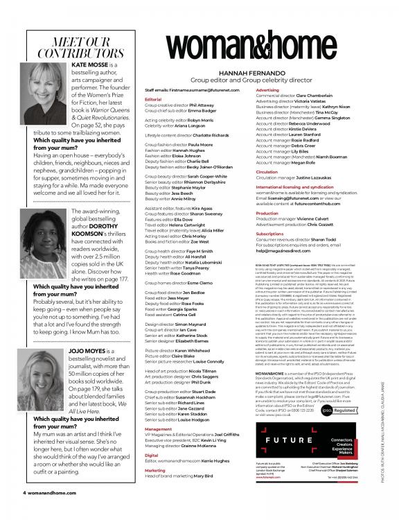 Woman & Home is a monthly lifestyle magazine published in the United Kingdom. It was founded in 1926 and is currently owned by Future plc. The magazine covers a wide range of topics, including fashion, beauty, food, home, and travel. Woman & Home is a popular read for many women who are interested in staying up-to-date on the latest trends and finding inspiration for their homes and lives. It is also a good source of practical advice on a variety of topics. Here are some of the things you can expect from Woman & Home magazine: * Fashion and beauty features * Home improvement and décor ideas * Recipes and cooking tips * Travel inspiration * Health and fitness advice * Relationships and parenting advice If you're a woman looking for a magazine that will keep you entertained, informed, and inspired, then Woman & Home is the magazine for you. Subscribe today and start enjoying the latest fashion, beauty, and lifestyle trends! Here are some of the things that make Woman & Home magazine special: * It's been around for over 90 years, making it one of the most established women's magazines in the UK. * It has a team of experienced journalists who provide in-depth coverage of the latest trends and issues. * It's a great source of inspiration for women of all ages and interests.
