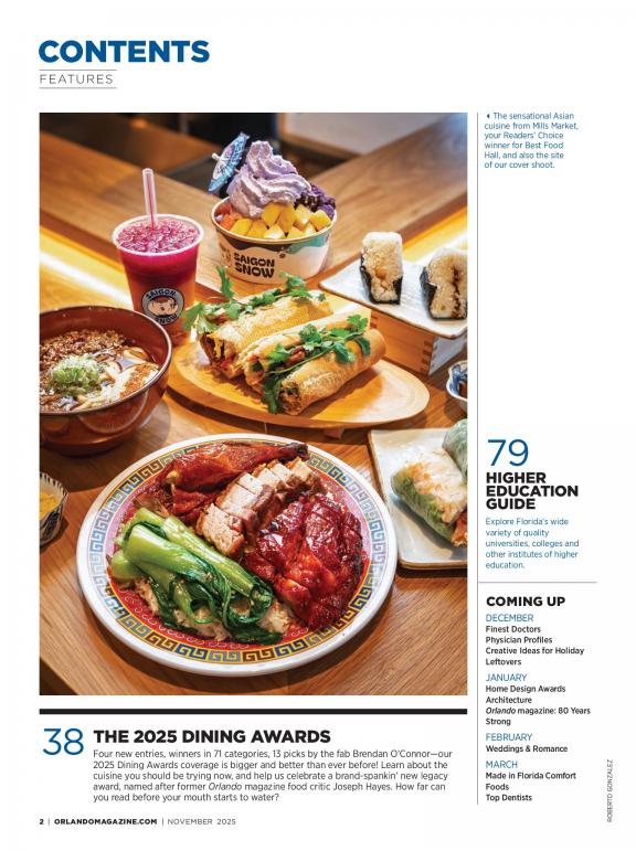 Founded in 1946, Orlando magazine reflects the lifestyle and interests of an upscale, educated readership. As “The City’s Magazine,” we offer timely, compelling local content that is both entertaining and informative. The arts, dining, travel, entertainment, style, people and trends—if it’s part of Orlando’s lifestyle, you’ll find it covered in Orlando magazine. Get the digital edition of Orlando Magazine now!
