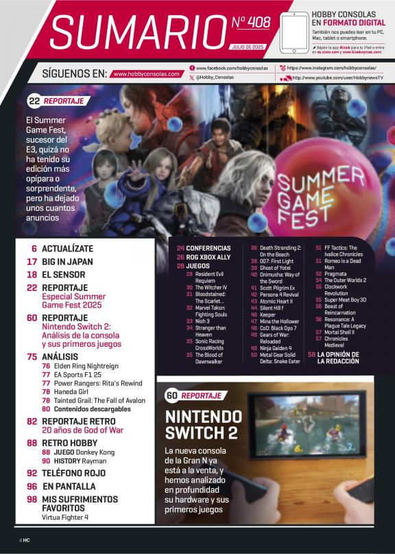 HOBBY CONSOLAS España La revista de videojuegos mas vendida en España que cada mes ofrecela información mas completa y actual para todas las consolas. Todos los contenidos,reportajes,análisis de novedades,preestrenos,trucos....