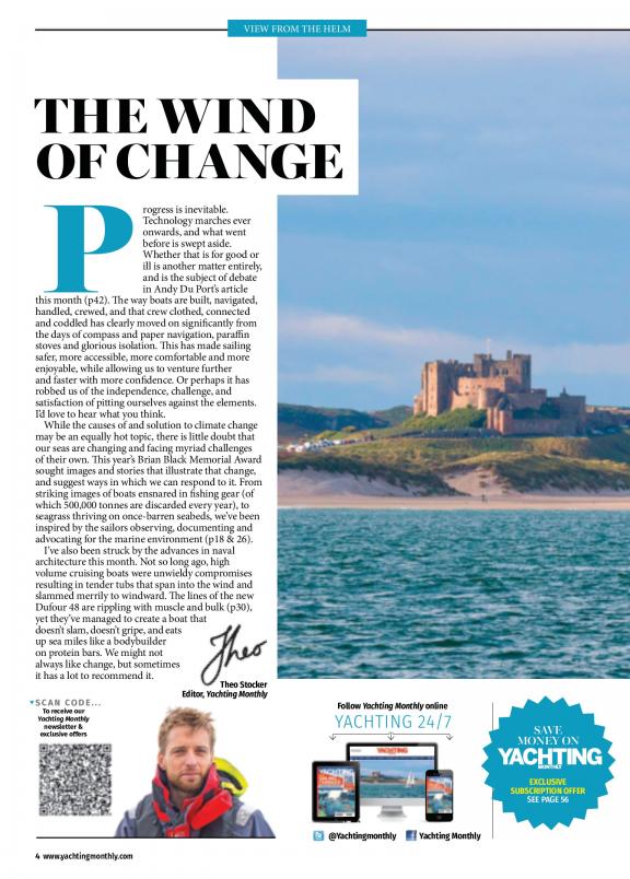 Published by Time Inc (UK). Yachting monthly is at the heart of the British yachting market and is for people who actively sail their boats - whether cruising across the channel, around the coast or further a field in blue waters. It provides an entertaining mix of vital information for cruising yachtsmen with all levels of experience, which maximises their enjoyment, increases their skills and gives them the confidence to broaden their horizons.