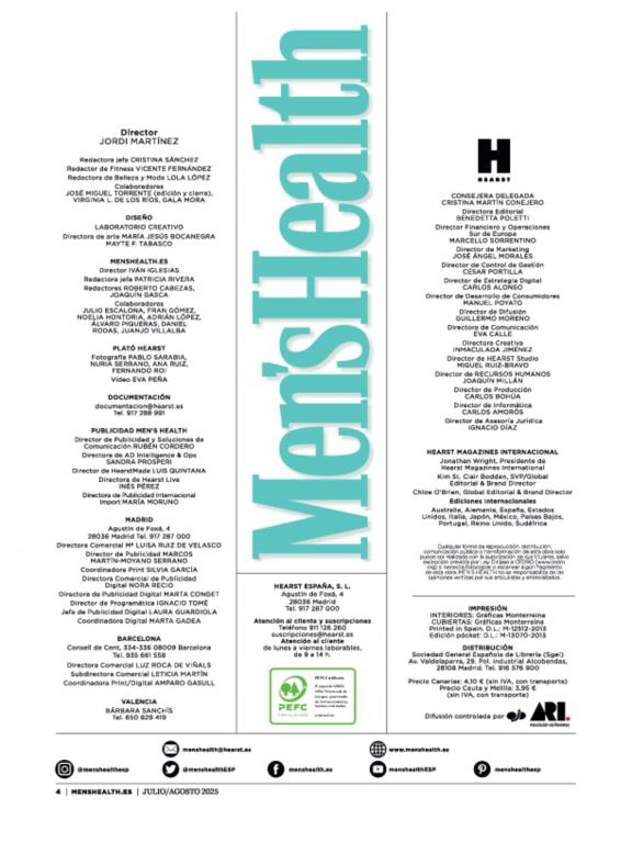 Men’s Health España es la marca de referencia masculina de estilo de vida activo a nivel internacional. Una guía práctica para los hombres reales que quieren triunfar en cada aspecto de su vida. Desde la forma física hasta la salud mental, del cuidado personal al estilo, de la alimentación sana a los últimos gadgets deportivos. Men´s Health ofrece al lector las herramientas que necesita para hacer accesible lo aspiracional. LLEVAMOS LA SUPERACIÓN EN LOS GENES Creada en 1987, Men´s Health cuenta con las mejores voces y los mejores expertos en vida activa. Con 28 ediciones internacionales que llegan a millones de lectores cada mes, Men´s Health es la revista masculina que te reta a conseguir la mejor versión de ti mismo.