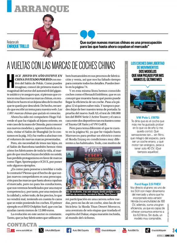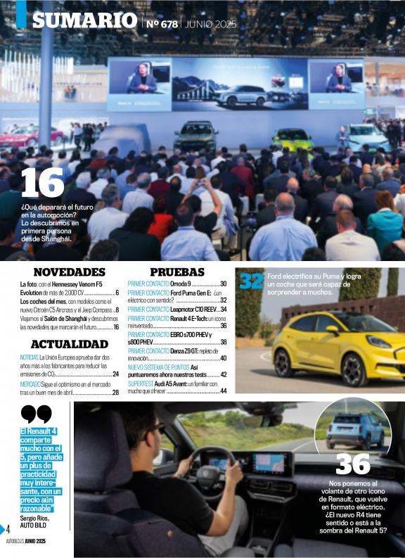 AUTO BILD ESPAñA La revista semanal generalista del motor más vendida en España. Dirigida a todos los apasionados del mundo del motor, que cautiva incluso a los lectores que no están habituados a comprar revistas de coches. Fiable y rigurosa en el tratamiento de la información. Es práctica, clara, sencilla y directa en sus temas. Ofrece al lector todo lo que le interesa: exclusivas sobre los nuevos lanzamientos y prototipos, test y comparativas en profundidad y los trucos y consejos más prácticos.