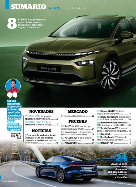 AUTO BILD ESPAñA La revista semanal generalista del motor más vendida en España. Dirigida a todos los apasionados del mundo del motor, que cautiva incluso a los lectores que no están habituados a comprar revistas de coches. Fiable y rigurosa en el tratamiento de la información. Es práctica, clara, sencilla y directa en sus temas. Ofrece al lector todo lo que le interesa: exclusivas sobre los nuevos lanzamientos y prototipos, test y comparativas en profundidad y los trucos y consejos más prácticos.