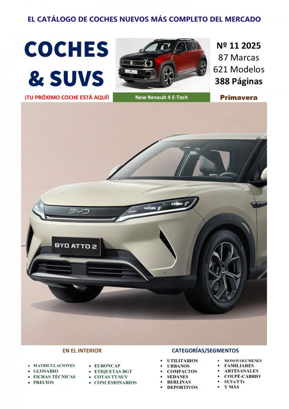 COCHES & SUVS España | Están llegando nuevas marcas y modelos, por tanto, si buscas un coche nuevo como si quieres saber la amplia variedad a la venta, aquí los encontrarás. En su interior incluye un glosario para no quedarte desfasado ante las nuevas tecnologías, especificaciones de cada modelo, país de fabricación, un listado con la red de ventas y mucho más. Es el catálogo más completo que existe, incluyendo imágenes del interior, frontal y posterior.
