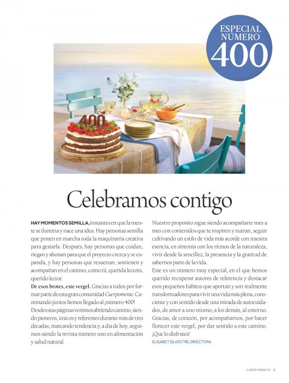 CUERPOMENTE La revista número 1 en salud y alimentación natural. Una publicación pionera y referente para todas las personas interesadas en cuidarse de forma sana y natural, que cuenta con los mejores especialistas, la información más actual y los consejos más eficaces para disfrutar de una vida más saludable y plena.