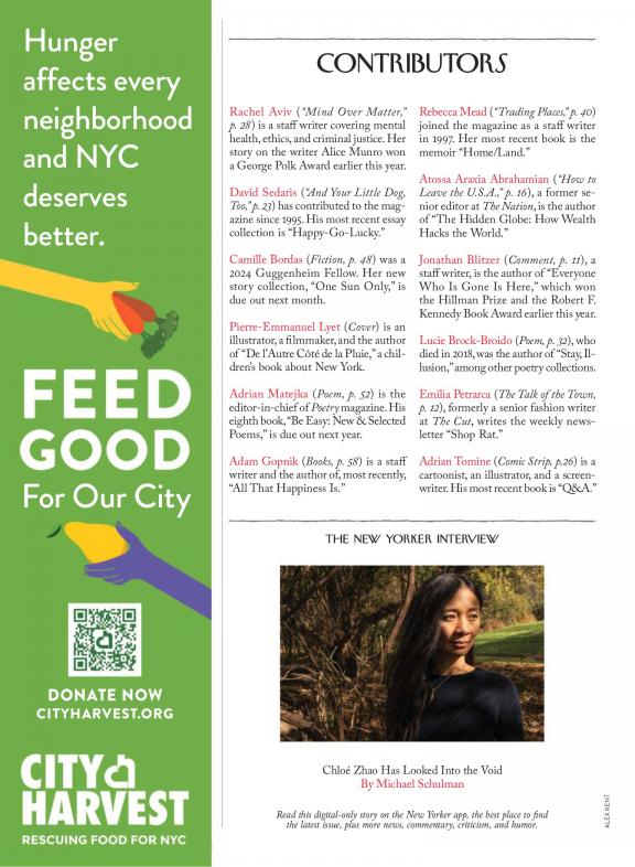 The New Yorker is a weekly American magazine that publishes reviews, essays, investigative reporting, and fiction. Although it focuses primarily on New York City social life, The New Yorker has a broad readership outside of the city due to the quality of its journalists.