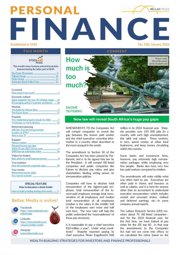 Personal Finance is South Africa's leading monthly investment strategy magazine aimed at individuals who are serious about saving money, securing their financial future, building wealth, and preserving it for future generations.