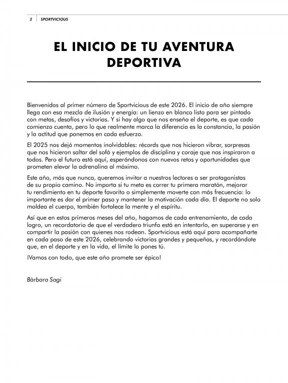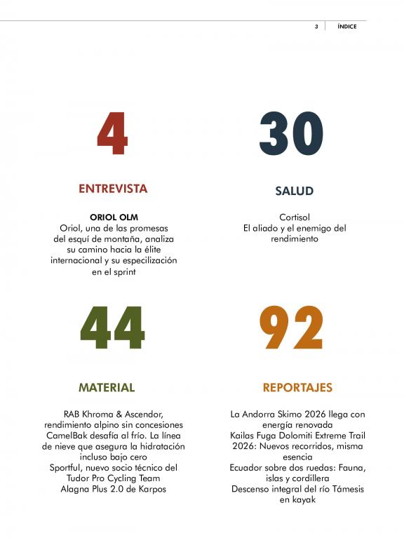 Revista de deportes: entrevista a atletas profesionales, artículos de salud, test de material deportivo, reportajes de aventuras, competiciones y un largo etcétera. Trail running, ciclismo, natación, esquí, triatlón...