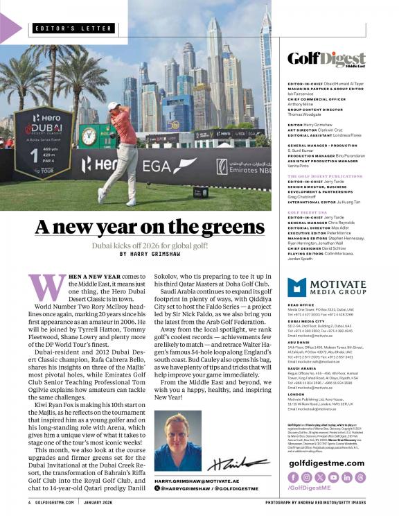 Golf Digest Middle East is the leading golf publication in the region and the biggest golf magazine brand globally. Featuring a blend of local and international content, Golf Digest Middle East is essential reading for the passionate golfer - combining expert tuition from the world's leading tour professionals with the latest in equipment, news and travel.