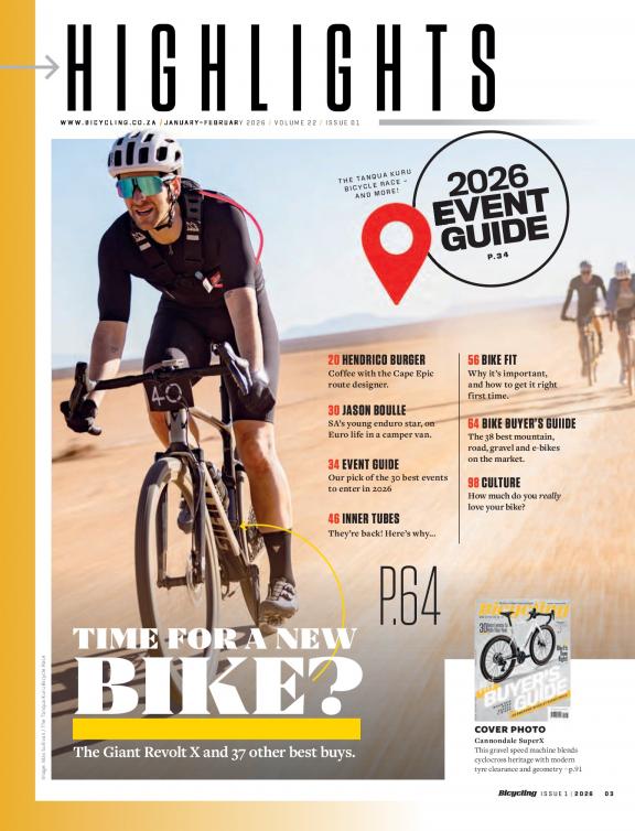 Bicycling is South Africa's leading cycling magazine and is aimed at both road and mountain biking enthusiasts. Launched in February 2003, it is published 10 times a year, targeting the fast-growing and affluent lifestyle cycling market youngsters, adults, professional as well as casual cyclists. The magazine is filled with the best international and local content for every element of the cyclist's life from training techniques and fitness information to inspiring human interest stories, event news, nutrition and motivation. Bicycling is also South Africa's leading tester of bikes and gear with over 30% of the monthly magazine dedicated to the latest reviews so our readers can make the best choices.