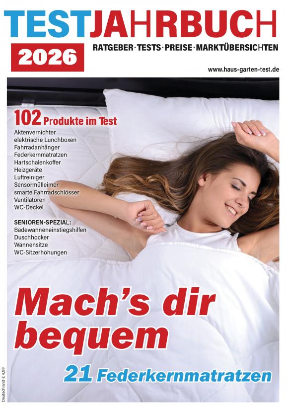 Gute Tests sind auch weiterhin ein starkes Argument für Verbraucher, ein Produkt zu kaufen. Es geht eben nicht nur um den günstigsten Preis, sondern darum, welches Produkt für den jeweiligen Konsumenten richtig ist. Beim diesjährigen TESTJAHRBUCH haben wir auf 116 Seiten über 140 Geräte in Vergleichstests für Sie getestet. Allein in einem Fitness-Spezial konnten wir 28 Fitnessgeräte für Sie genauer unter die Lupe nehmen: Dazu gehören sechs Crosstrainer, vier Laufbänder, sechs Fahrradheimtrainer, sieben Rudergeräte, vier Vibrationsplatten sowie ein Balanceboard. Nach dem Sport ist Zeit für die Dusche angesagt: Vier Sparduschköpfe wurden im Vergleich getestet.