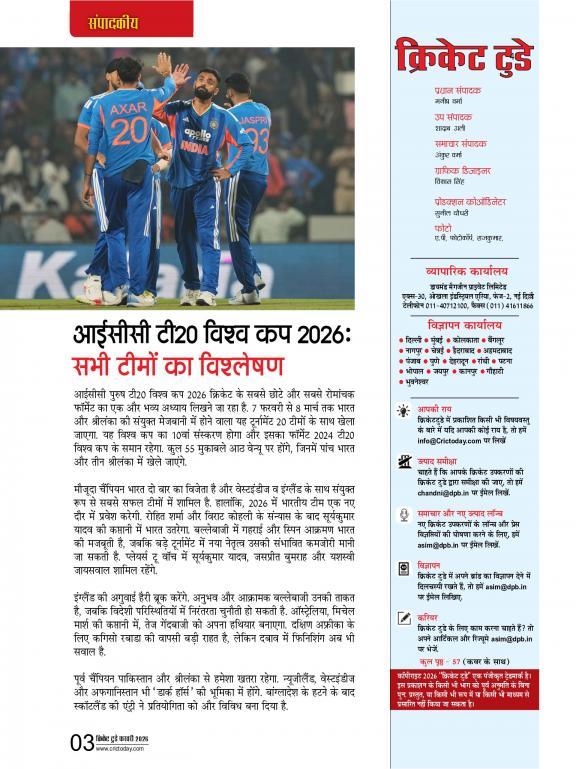 Cricket Today is a monthly cricket magazine in Hindi published by a Delhi-based company, Diamond Magazines. It is one of the most popular cricket magazines in India, and is known for its in-depth coverage of all aspects of the game, including: * Match reports and analysis: Cricket Today provides detailed match reports and analysis of all major cricket matches, including Test matches, One-Day Internationals, and T20 Internationals. The magazine also covers domestic cricket tournaments in India, such as the Ranji Trophy and the Indian Premier League. * Player profiles and interviews: Cricket Today features profiles of top cricket players from India and around the world, as well as interviews with them. These profiles and interviews provide readers with insights into the lives and careers of these players. * Expert columns and commentary: Cricket Today features columns and commentary from leading cricket experts, including former players, coaches, and journalists. These columns and commentary provide readers with different perspectives on the game. * Cricket news and trends: Cricket Today covers the latest cricket news and trends from India and around the world. The magazine also provides analysis of the latest developments in the game. Cricket Today is a valuable resource for anyone who is interested in cricket. It is a must-read for anyone who is looking to stay informed about the latest cricket news and trends, or who is looking for in-depth coverage of all aspects of the game.
