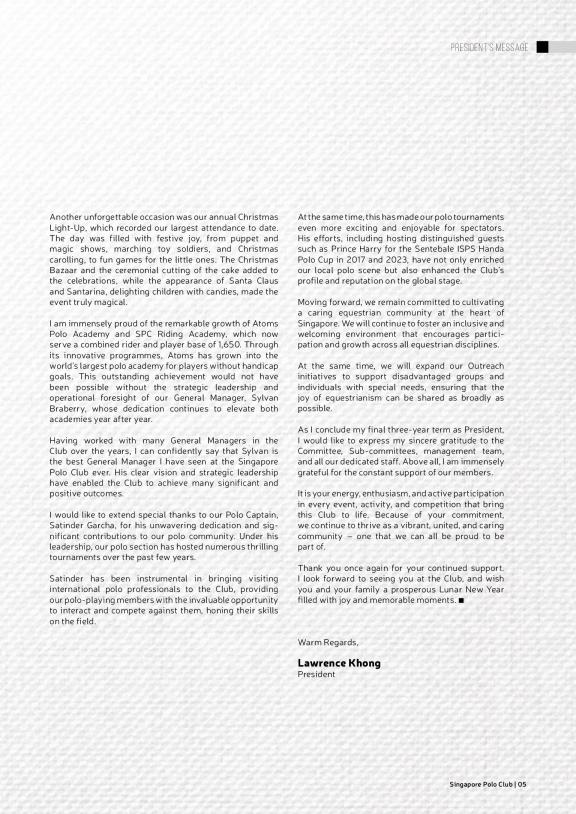The Singapore Polo Club's quarterly magazine offers an informative guide to the club's polo and equestrian activities.