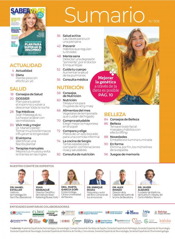La revista mensual nº1 en ventas. Un referente en salud, alimentación y calidad de vida. Con contenidos rigurosos y apoyados por los mejores profesionales. Entre sus páginas podemos encontrar información sobre cómo mejorar el exceso de peso, la presión arterial, el colesterol o el funcionamiento del corazón, entre otros muchas cuestiones de salud; las pautas para seguir una alimentación saludable; y el estilo de vida que nos permite vivir mejor.