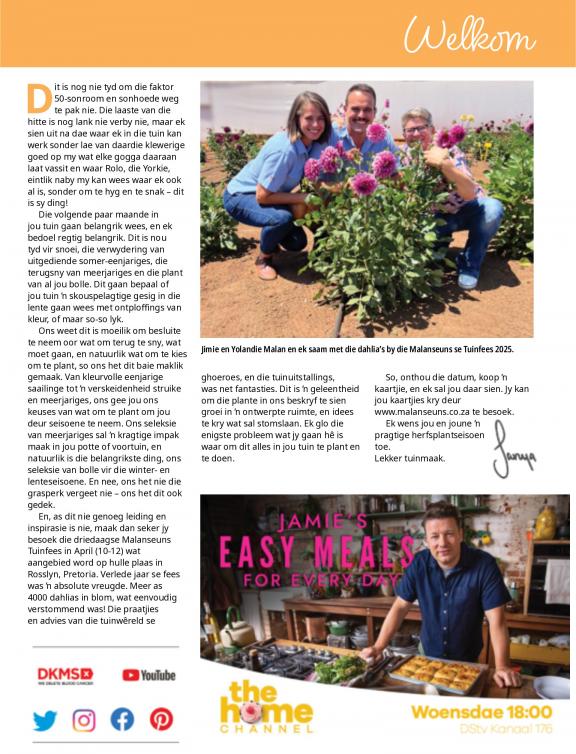 Die Tuinier Tydskrif is daaraan toegewy om tuiniers te inspireer deur praktiese raad te gee en tuinprojekte stap vir stap te wys. Ons maandartikels sluit in tuinontwerp, diepteplantartikels, die kweek van groente en kruie, watertuinmaak, tuinwildlewe en troeteldiere, spesialisplantartikels en veel meer.