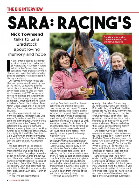Racing Ahead was founded in 1975 by a group of horse racing enthusiasts who wanted to create a magazine that would provide comprehensive coverage of the sport. Racing Ahead is known for its in-depth reporting, its insightful analysis, and its stunning photography. It features articles on a variety of topics, including: * Race news: The latest news from the horse racing world, from upcoming races to industry trends. * Horse profiles: Profiles of horses, from up-and-coming stars to legends of the sport. * Trainer profiles: Profiles of trainers, from those who are just starting out to those who have won the Triple Crown. * Jockey profiles: Profiles of jockeys, from those who are just starting out to those who have won the Kentucky Derby. * Racecourse reviews: Reviews of racecourses, from those that are new to the scene to those that are steeped in history. Racing Ahead is a must-read for anyone who is interested in horse racing. It is the only magazine that provides comprehensive coverage of the sport, from news and profiles to racecourse reviews. Subscribe today and become part of the horse racing community!
