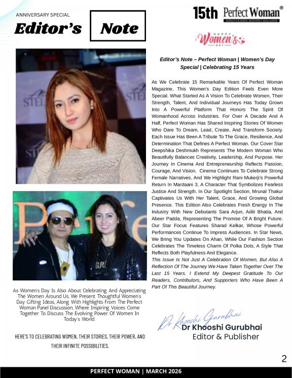 Our magazine, ‘Perfect Woman’ a fashion and lifestyle magazine, distributed across the country and is primarily targeted at the women of today, who are assertive and tenacious. Branched out of ‘GGC Limited’, an organization devoted to film production, this magazine has witnessed fruitful innings in the 3 years, since it came into being. Perfect Woman’s aim is to enhance their ambitious side and encourage and inspire women to achieve the goals that they have dreamed of accomplishing. Through this magazine we connect with women of every age and cater to her every need- be it fashion, beauty, fitness, lifestyle, work, food, relationship or travel. Now celebrating our fourth anniversary this year.