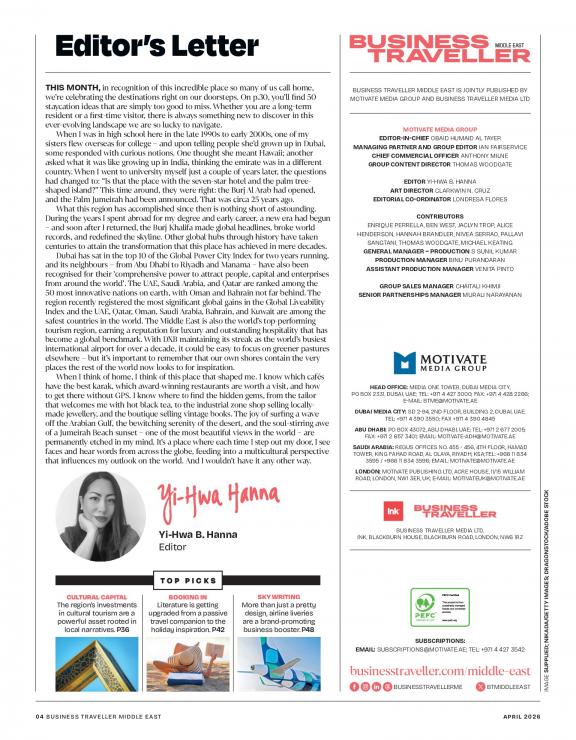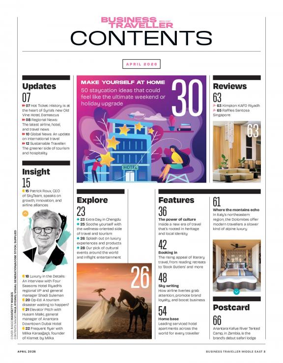 Business Traveller Middle East is the leading magazine for the corporate traveller. We aim to save you money and make your travelling life easier. Each edition has the latest news covering airlines, airports, hotels and car hire companies, regional and international destination features and updates on gadgets, technology and accessories.
