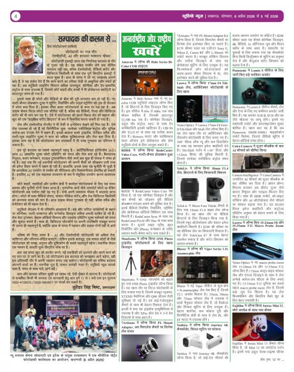 Studio News is monthly 16 pages multi-color tabloid in Hindi. This is India First Photography newspaper, which is published in Hindi, enabling the studios, photographers and other Photography trade related technicians to get first-hand knowledge and understanding about the latest products, help them acquire skill to use the products and make them proud owners. STUDIO NEWS is focusing and distributing hard copy, to the studios in India’s state -Uttar Pradesh RAJASTHAN, GUJARAT, PUNJAB, HARYANA, HIMACHAL PRADESH, UTTARAKHAND, DELHI, BIHAR, CHHATTISGARH, JHARAHAND & MADHYA PRADESH. Circulation of hard copies is approximately 10000 every month. The main objective of The STUDIO NEWS is to educate studios, photographers and technicians with the latest technical knowledge of camera, video and other trade related equipment’s; familiarize them with the editing and other software features and support them with wide range of usages of new technological equipment’s which are quite unknown or ambiguous to them due to language barrier.